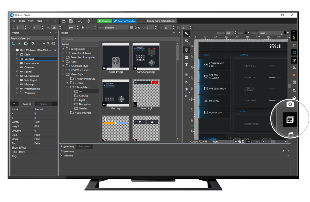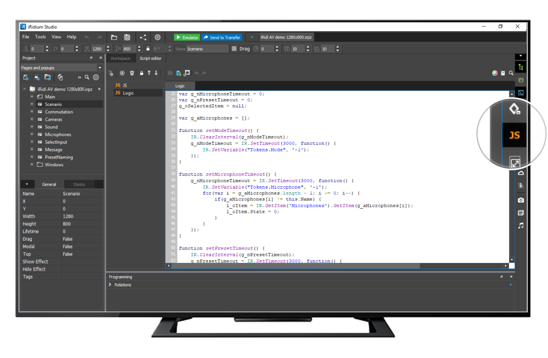 It is often required to set complicated logics of equipment work. iRidi JavaScript allows to realize all demands of a customer.