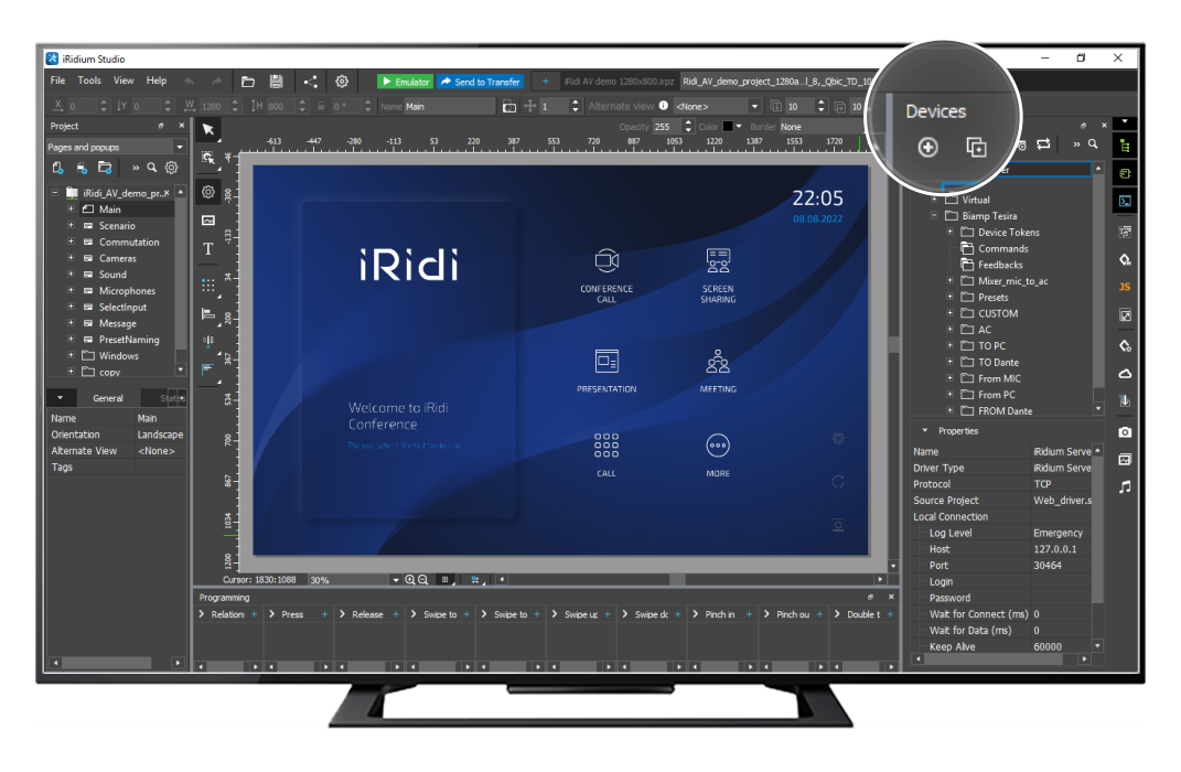 iRidi Server works 24/7 and provides remote control of an automation object. A server and a panel interact via our own protected protocol.